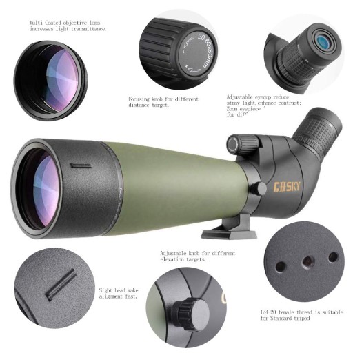 До дистанційної кутової труби 20-60x80, оновленої компанією Gosy, додається телефонний адаптер. Він має сильніше збільшення, кращі оптичні характеристики та стабільнішу систему фокусування. Міцні рами та гумова арматура забезпечують стійкість проти ковзання, стійкість до ударів і міцний зовнішній захист, що дозволяє осцилографу витримувати найсуворіші умови. Ці витрати є найкращим вибором для любителів активного відпочинку та спостерігачів за птахами. Він ідеально підходить для стрільби, стрільби з лука, полювання, спостереження за птахами, походів, кемпінгу, пейзажної зйомки, спорту на відкритому повітрі, астрономічних спостережень тощо.