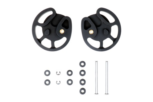 Шківи мають подвійну структуру (два шківи в одному), призначену для роботи зі струною (верхня та два троси (нижні допоміжні лінії). Вони виготовлені із загартованого алюмінію, обробленого на станках з ЧПУ.