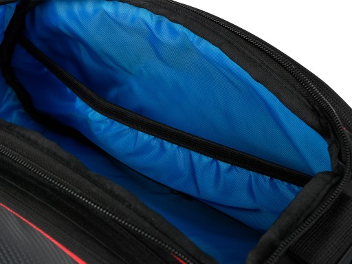 - Сумка має 1 основне відділення об'ємом приблизно 15 л, дві бічні кишені та додаткову маленьку кишеню