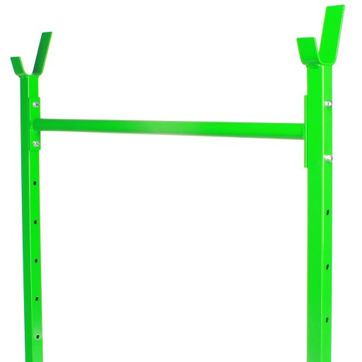 Додатковий повзунок з тренажером - в комплекті зі стійками є додатковий повзунок з страховочними вилками під штангу і штангою для підтягувань. Завдяки штанзі кількість вправ, які можна виконувати на підставках EH-S006, збільшується за допомогою гімнастики та тренувань на перекладині.