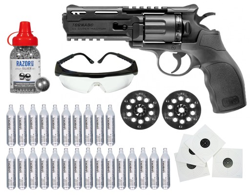 Револьвер для пневматичної зброї UMAREX Tornado - CO2, 4,5 мм, BB, 120 м/с, RIS-рейка, 3 магазини на 10 патронів + 1500 патронів 4,5 мм BB + 25 капсул CO2 + захисні окуляри + 10 мішеней