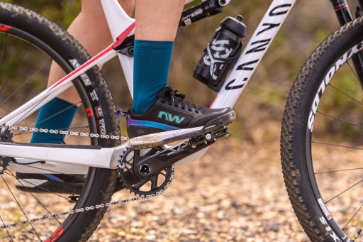 Черевик із плоскими педалями з ексклюзивною системою Northwave Flat System для чудового контролю. Комбінований профіль, розроблений Northwave і Michelin, забезпечує неперевершене зчеплення з педалями. Унікальною в цій категорії є внутрішня адаптивна гомілка з ТПУ зі стратегічно розташованими вирізами та ребрами жорсткості для ще більшого контролю та підтримки. Проміжна підошва EVA забезпечує ефективну амортизацію.