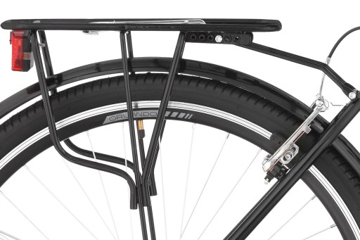 Суцільна, посилена стійка з порошковим покриттям. Ви можете легко встановити на нього додатковий кошик разом із сумками та ременями для черевиків. Завдяки цьому велосипед буде неймовірно містким і практичним.