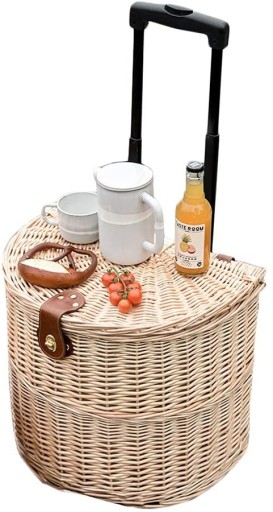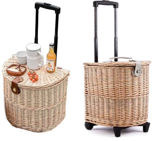 Новинка! Кошик на колесах, візок для пікніка з функцією столика. Кожен кошик сплетений вручну, з унікальним візерунком