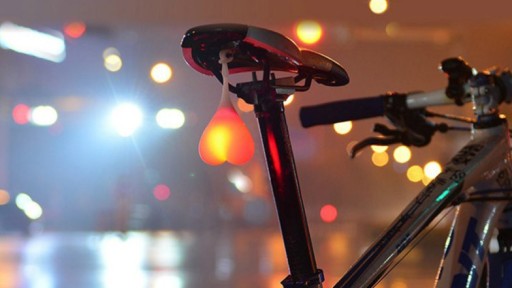 Яскраво світиться силіконова лампа, прикріплена під сідлом (або в інших місцях) у формі серця. Чудовий гаджет для подарунка чи жарту, але також дуже корисний під час нічних велосипедних витівок (заднє червоне світло обов’язкове). Підвищте свою безпеку, придбавши світлодіодний ліхтар для велосипеда!