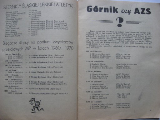 Унікальне видання, серед іншого: регламент, склад команди, рекорди Сілезії 1970 р., представлення клубів (Гурник Забже, П'яст Глівіце, Старт Катовіце, АЗШ Шльонск), календар подій на 1971 р., реклама.