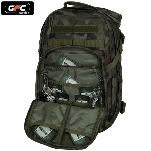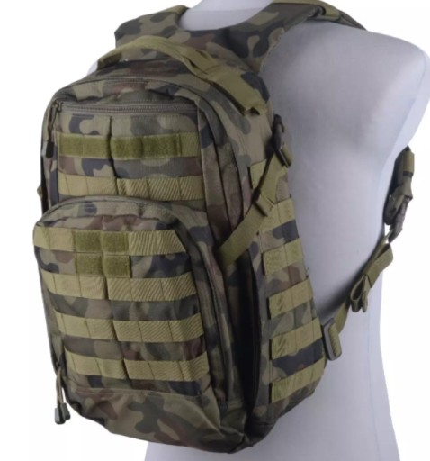 Універсальний тактичний рюкзак EDC, який відмінно підійде як на полі страйкбольного бою, так і в повсякденному використанні в місті або в туристичній поїздці. Виготовлений із міцного нейлону. Основне відділення рюкзака відкривається на всю висоту, як валіза, що полегшує пакування. Всередині є кишеня для гідратного картриджа з гачками для його кріплення, а також дві додаткові сітчасті кишені. Крім того, рюкзак має плоску кишеню на тильній стороні зі вставкою жорсткості.
