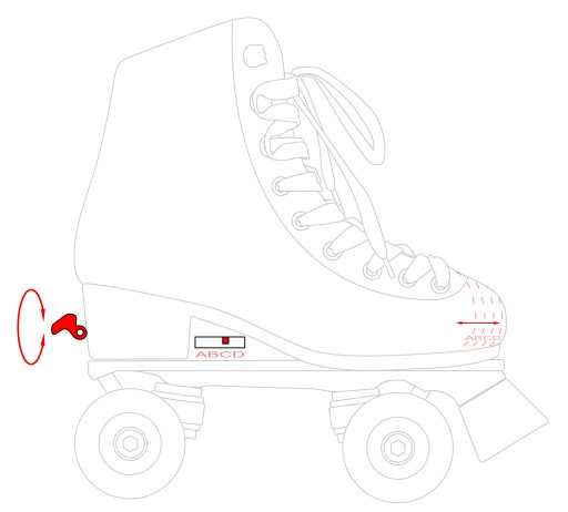 Регулювання розміру без інструментів за допомогою циферблата - можливість точного налаштування розміру роликових ковзанів за допомогою колеса, яке змушує механізм, розташований всередині роликових ковзанів, рухатися в їх передній частині. Завдяки цьому розмір роликових ковзанів можна ідеально адаптувати до будь-якого розміру стопи в заданому діапазоні.