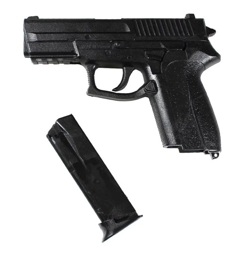 Гумовий пістолет для навчання самозахисту та виведення з ладу нападника за допомогою ЗНІМНОГО МАГАЗИНУ. Виготовлений з термопластичної гуми TPR - це матеріал, який має характеристики як гуми, так і пластику, він гнучкий, але більш жорсткий, ніж гума. Хороша якість виготовлення та розміри, що відповідають оригіналу, дозволяють реалістично навчатися. Жорсткий лук дозволяє тренувати важелі пальців.