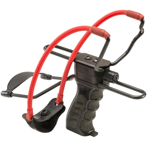 У рогатці використовується інноваційне рішення у вигляді лазерної указки. Лазер, вбудований в рукоятку рогатки, допомагає визначити точку прицілювання, тому стрілець може ефективно вносити поправки і, як наслідок, стріляти точніше.