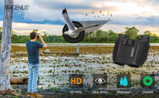 Бінокль HD 10x25: Бінокль BRIGENIUS 10x25 - Маленький і потужний! 10-кратне збільшення з лінзою 25 мм забезпечує зображення високої роздільної здатності з відстані 1000 метрів і шириною 362 фути. Це дозволяє отримувати дивовижні чіткі деталі під час спостереження за птахами, дикою природою та дослідження.