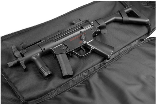 Чохол виготовлений з міцного нейлону. Пінопластовий наповнювач додатково захищає зброю від ударів і надає жорсткість стінкам. Всередині матеріал прогумований з водонепроникним покриттям, яке захищає вміст від дощу та вологи. Краї в місцях з'єднання мають пластикові планки, які зміцнюють і додають жорсткості конструкції - чохол не мнеться, тому блискавки не блокуються, що забезпечує швидкий і зручний доступ до зброї.