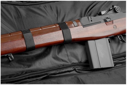 Чохол також оснащений компресійними стрічками, на які передається вага зброї. Верхні лямки застібаються на пряжки фастекс.