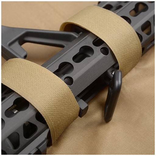 Також модель оснащена компресійними ременями, на які передається вага зброї. Лямки застібаються на пряжки фастекс.
