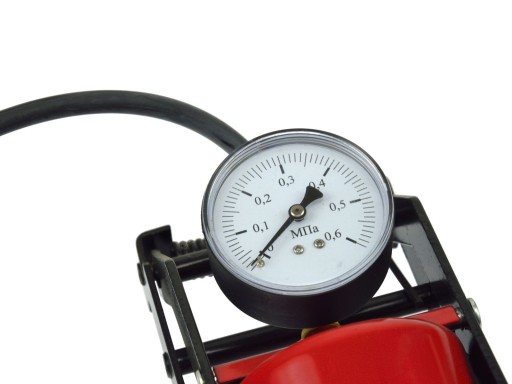 Ножний однопоршневий насос для накачування коліс легкових автомобілів, велосипедів, мотоциклів, скутерів, м'ячів тощо. У набір входять універсальні наконечники для накачування напр. м'ячі та матраци.