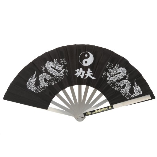Китайський каркасний вентилятор Kung Fu Tai Chi Dragon з нержавіючої сталі чорний