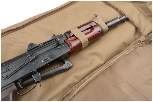 Чохол також оснащений компресійними стрічками, на які передається вага зброї. Верхні лямки застібаються на пряжки фастекс.