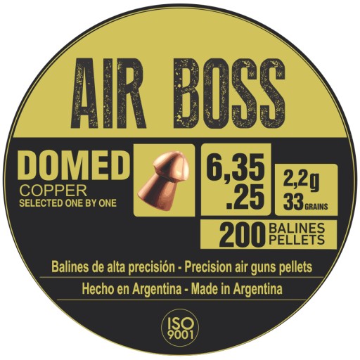 Air Boss Copper Domed 6,35 мм — це важка, точна стріла Diabolo, покрита шаром міді. Індивідуально підібрані, шматок за шматком (Selected One by One). Напівкругла головка забезпечує кульці хороші аеродинамічні умови після пострілу, дозволяючи точно стріляти на великі відстані.