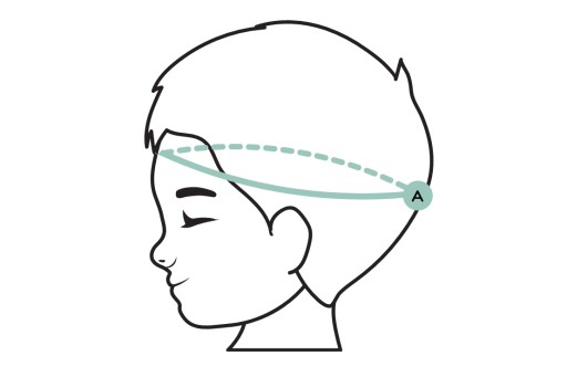 Однак, щоб бути впевненим, що вибраний розмір шолома справді підходить, найкращий і найточніший спосіб – це виміряти окружність голови дитини, як зазначено на малюнку, і перевірити, чи відповідає вона діапазону регулювання, призначеному для даного розміру шолома.
