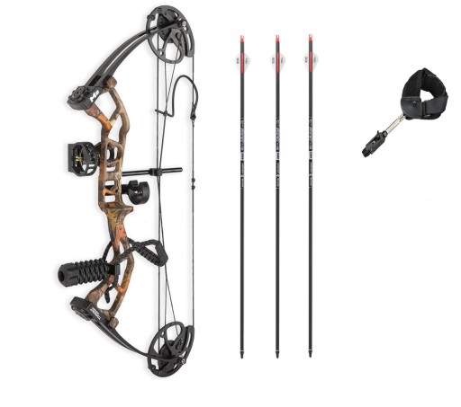 Пристойний складний лук дуже хорошої якості для стрільців середнього рівня в дуже багатому комплекті, готовому до стрільби. Хороші параметри зйомки. Багато регулювань міцності та довжини струни.
