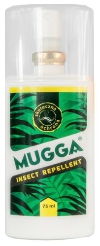 Mugga Spray для дітей, оригінальний засіб від комарів та кліщів на польському ринку. Рідкий препарат для безпосереднього нанесення на одяг і відкриті частини тіла на основі ефективної діючої речовини DEET, нотифікованої Європейським Союзом, яка захищає організм людини від різних видів комах, небезпечних для здоров'я.