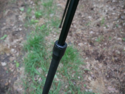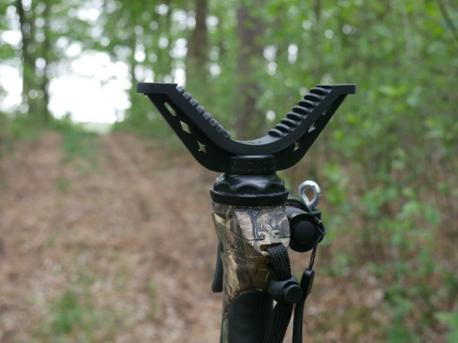 - Фіксатор регулювання висоти - від 80 см до 180 см. Дуже широке регулювання висоти, особливо важливо для високих (понад 180 см) мисливців, у яких часто при полюванні навіть з невеликими нерівностями рельєфу нижні крозьки у версії 165 см стають закороткими, одна нога «недотягує», що фактично це призводить до того, що стрижень знаходиться надто низько і змушує стрільця займати неприродну позицію. Спостерігати і стріляти в такому положенні втомлює і часто позначається на влучності.