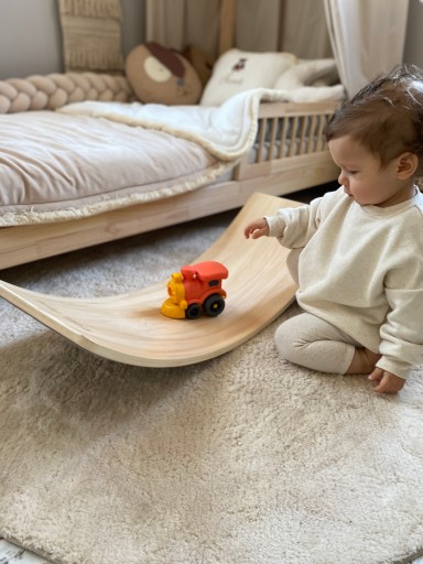 Ми знаємо з досвіду, що немовлята люблять дати волю своїй уяві та використовувати об’єкти навколо них по-справжньому творчо. Тому на дошці можна гойдатися, розглядати її як стіл, смугу перешкод або трасу для іграшкових машинок. Наш балансир для дітей має нековзку поверхню, завдяки чому його використання абсолютно безпечно. Випускається в кількох кольорових версіях.