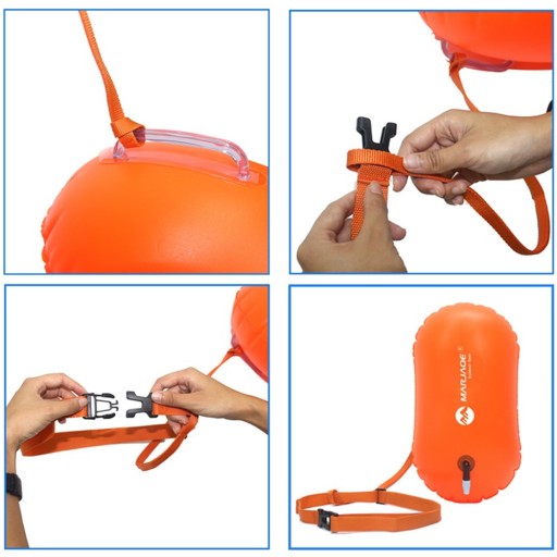 Надувний буй - це виріб, який ідеально підходить для всіляких походів на воду. Забезпечує необхідний захист і видимість під час плавання, як у басейні, морі та озері. Висока плавучість дозволяє бую вільно плавати на поверхні води, а в разі виснаження, задухи або судоми це безпечна можливість перевести подих і відпочити.