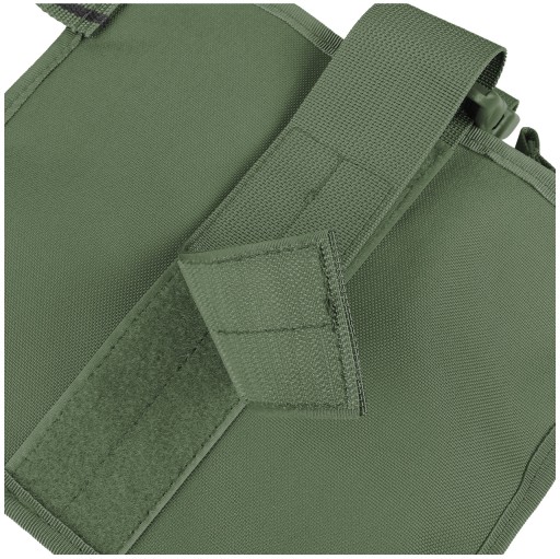 Панель оснащена трьома ременями кріплення. Кріпиться на стегновий ремінь і дві регульовані стегнові лямки. Внутрішні ремені для ніг обшиті гумовими вставками, які зменшують зміщення кобури. Ремінці оснащені міцними пряжками, які дозволяють швидко розстібатися.