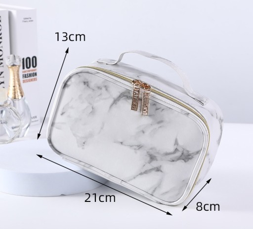 Практична косметичка, в якій можна зберігати як макіяж, так і засоби по догляду. Виготовлений з міцного водонепроникного матеріалу, схожого на шкіру (ПУ). Застібається на блискавку. Косметичка відрізняється унікальним дизайном, практичністю і якістю виготовлення. Має зручну ручку для перенесення косметички. Привертає увагу сучасний дизайн і застосування мармуру.