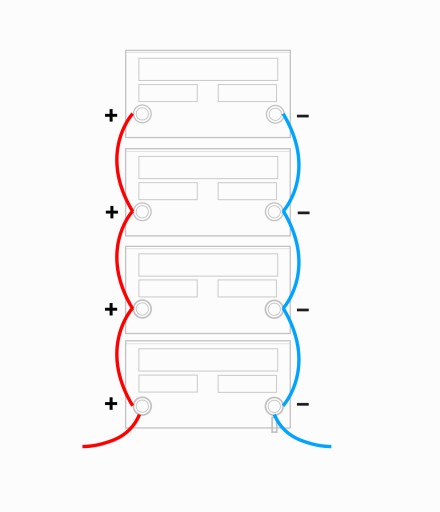 Завдяки можливості послідовного з'єднання батарей ми можемо отримати більш високу напругу, зберігаючи ту саму ємність.
