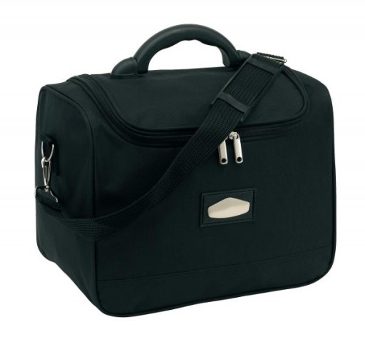 Косметичка LASER PLUS, основне відділення на блискавці, зі змінною металевою емблемою, ручка з міцного пластику, включає регульований і знімний плечовий ремінь.