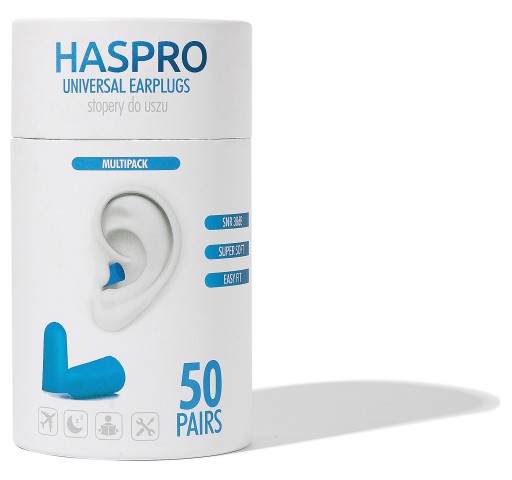 Haspro Tube50 — це сучасна збірна упаковка у вигляді туби, що містить 50 пар одноразових берушів із зручного та надзвичайно ніжного пінополіуретану, який легко адаптується до кожного вуха менш ніж за хвилину. Додатково до кожного набору йде невеликий контейнер для зберігання пробок.