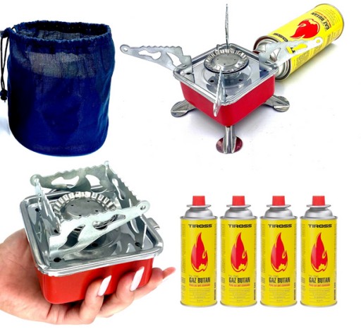 Міні туристична плита на газових балонах/патронах. Невеликий розмір ідеально підходить для туризму, подорожей, скелелазіння, під час велосипедних подорожей. Оснащений п'єзоелектричним підпалом, складними ніжками та чотирма міцними металевими розкладними кронштейнами для тарілки.