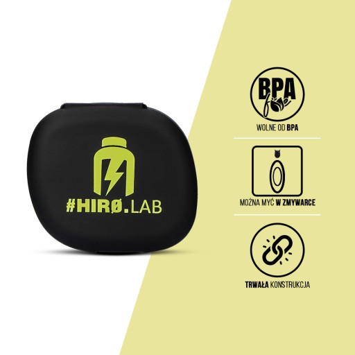 Pillbox був створений з думкою про захист здоров'я та навколишнього середовища. Пластик, з якого виготовлена коробка, не містить дуже шкідливої сполуки BPA і виготовлений методом переробки. Крім того, завдяки щільній упаковці він має високу стійкість до вологи, пилу та бруду. Це забезпечить гігієнічне, стерильне та безпечне використання продукту. Крім того, коробку можна безпечно мити в посудомийній машині, що полегшує утримання контейнера в чистоті. Вибираючи Hiro.Lab Pillbox, ви можете тримати всі свої улюблені добавки Hiro в одній руці!