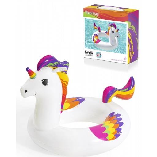 Надувне кільце Єдиноріг Bestway скрасить Ваш відпочинок і літній час біля води. Модний мотив єдинорога. Красиві, яскраві кольори. Велике плавальне кільце також підійде як крісло для відпочинку біля води. Великий діаметр дозволяє плавати і довго лежати на воді під сонячними променями. Він незамінний під час ігор на березі моря, озера, басейну або в саду. Надувна іграшка для плавання Bestway - висока якість і надійність виготовлення, завдяки якій єдиноріг залишиться з вами надовго.