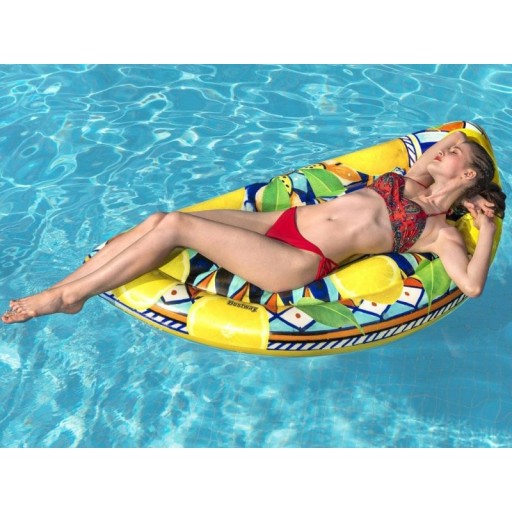 Лимонний матрац буде чудово виглядати на будь-якому святковому фото. Його форма дозволить комфортно плавати і безтурботно відпочивати. Яскрава, соковита графіка стане чудовим доповненням до будь-якої обстановки на природі. Барвисті сицилійські візерунки матраца привернуть увагу любителів сонячних ванн, які проводять багато святкових днів на піщаному пляжі.