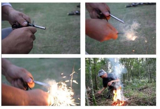 Кожен розпалювач вогню постачається з ниткою та сталевою пластиною з двома краями, підготовленими для натирання: прямим і зубчастим.