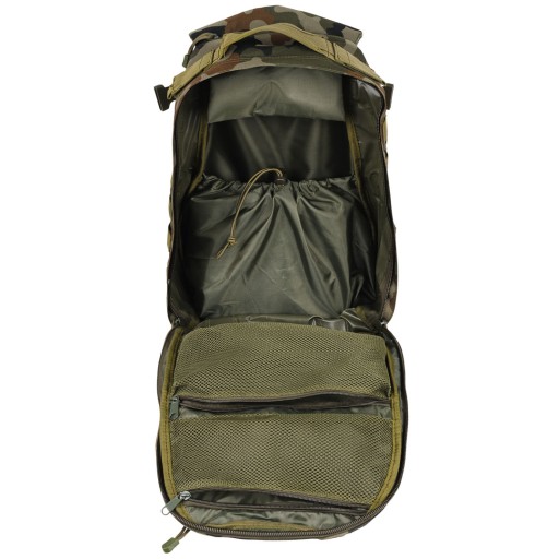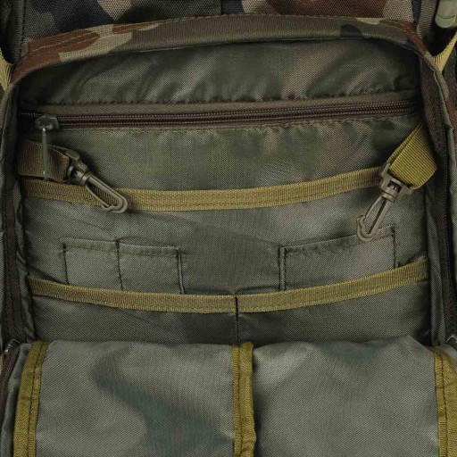 Великі модульні панелі MOLLE спереду та з боків рюкзака дозволяють прикріпити додаткові кишені. Петлі для лямок у нижній частині рюкзака дозволяють прикріпити поролонову підкладку або намет. Дві панелі з м’якої липучки для нашивок, відбивачів або нашивок. Дві компресійні лямки дозволяють зменшити габарити рюкзака і запобігти зсуву вантажу. Компресійні ремені з пряжками дозволяють прикріпити спорядження до зовнішньої частини рюкзака, наприклад, мокру куртку. Два вікна радіопорту (зліва і справа) для виведення гідратаційної трубки назовні. Радіопорти є ідеальними виводами для трубок або радіотелефонних кабелів. Липучки захищають отвори радіопорту від дощу. Ремені на лямках дозволяють організувати верблюжу змію і прикріпити додаткове обладнання, наприклад, компас. На випадок затоплення дно рюкзака має водовідвідні заклепки.
