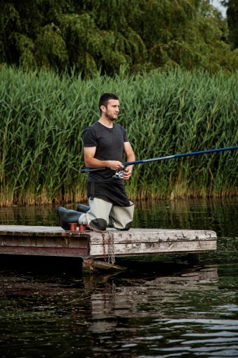 Водонепроникні вейдери підвищеної стійкості до механічних пошкоджень, з незнімно привареними якісними гумовими черевиками та підсиленнями на колінах. Модель виготовлена з водонепроникної, міцної тканини Plavitex Heavy Duty. Вони забезпечують ефективний захист ніг від води. Технологія двостороннього зварювання підвищує міцність швів.