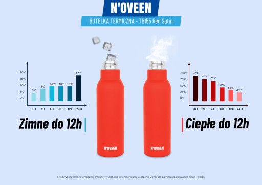 Термопляшка Noveen створена для зручного та естетичного зберігання ваших улюблених напоїв. Зберігаючи високу і низьку температуру напоїв, пляшка корисна цілий рік, незалежно від погоди. Він виготовлений з матеріалів, які не містять BPA. Використання високоякісної кислотостійкої сталі означає, що пляшка не утримує і не пропускає запахи, тому ви можете використовувати її протягом тривалого часу. Виріб міцний і стійкий до пошкоджень. Легке очищення дозволяє підтримувати належну гігієну. Термічна пляшка може стати першим чи наступним кроком до захисту навколишнього середовища шляхом зменшення виробництва одноразових відходів, наприклад чашок для кави чи чаю.