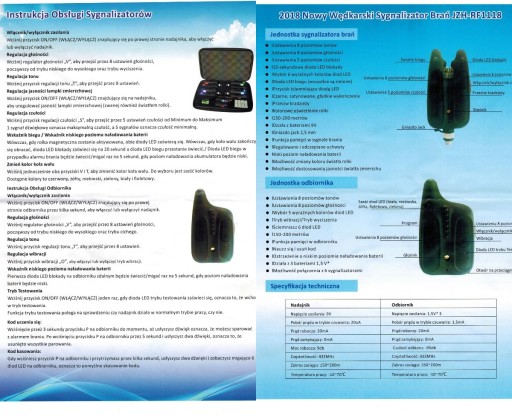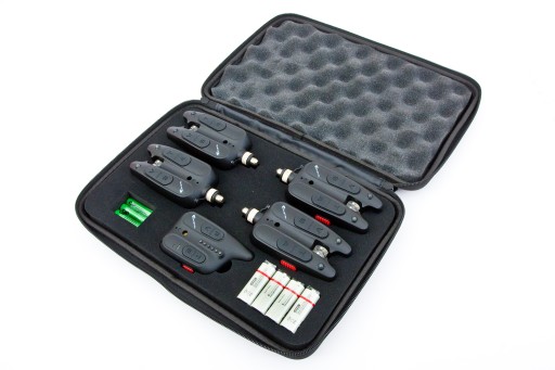 Лівий діод - сигнальний діод і діод пам'яті клювання. Правий світлодіод інформує про напрямок клювання (від берега або до берега) - в залежності від напрямку горить червоним або зеленим кольором. Коли рівень заряду батареї дуже низький, датчик повідомить вам про це, блимаючи світлодіодом кожні 5 секунд. ППК має 6 світлодіодів кольорів, відповідних сигналізаторам. (4 діода на сирени + 2 безкоштовних діода на додатково придбані сирени). Він оснащений 8 рівнями гучності і 8 типами звуків динаміків і системою вібрації. І сигналізатори, і блок управління оснащені так званою пам'яттю клювання. Діоди горять протягом 15 секунд після покльовки!Індикатори мають універсальну різьбу, легко кріпляться на універсальну опору або станцію для лову коропа. Набір сигналізаторів поставляється в зручному, захисному, зміцненому, наповненому піною футлярі.
