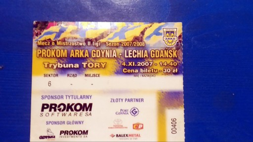 АРКА ГДИНЯ - ЛЕХІЯ ГДАНСЬК 2007 КВИТОК