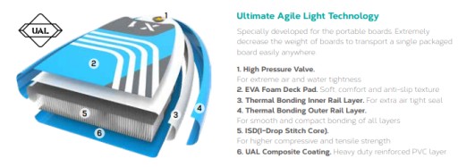 SUP Zray X-Rider X1 розроблено за допомогою Drop Stitch. Створений як один шар і щільний у волокнах, цей SUP є напрочуд жорстким!