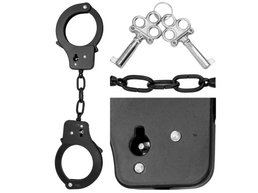 Чорні наручники з нержавіючої сталі. Мають подвійний замок. Два ключі в комплекті.