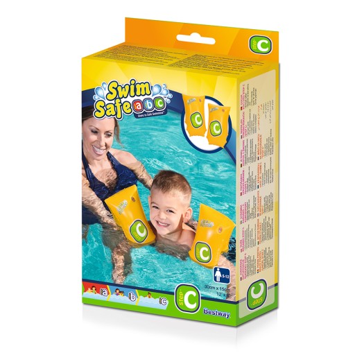Нарукавники Swim Safe ™ Step A, B, C ™ Step C призначені для дітей, які хочуть навчитися плавати. Підтримувальні браслети Bestway® Swim Safe™ Step C спеціально розроблені, щоб допомогти хлопчикам і дівчаткам оволодіти основами безпеки плавання та басейну, крок за кроком ведучи вас до навчання Bestway® Swim Safe™. Дитячі нарукавники Swim Safe™ ідеально підходять для переходу від кроку C, наприклад жилета для плавання або нарукавних пов’язок, оскільки вони дозволяють вашій дитині обертати руками та вправлятися у веслуванні руками, а потім переходити до самостійного плавання. Ці браслети Swim Safe™ оснащені подвійною повітряною камерою для додаткової безпеки та плавучості та мають яскраво-жовтий колір із надрукованим на них логотипом Bestway® Swim Safe™. Навчитися плавати ще ніколи не було таким безпечним і приємним!