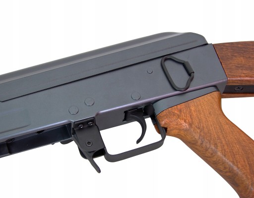 Важка, ліцензійна репліка AEG першої версії Калаша - АК47. Репліка виконана в масштабі 1:1, як і оригінал, тобто карабін SA M7, вироблений у США за ліцензією Калашникова компанією «Арсенал». Достовірно відтворена штурмова гвинтівка виготовлена з металу та імітації дерева.