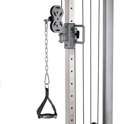 Бічний блок ProfiGym C400 multi-gym зробить ваш домашній тренажерний зал ще кращим! Він регулюється по висоті (17 різних положень), тому дозволяє тренувати все тіло. Можна зміцнити біцепси, трицепси, м'язи спини і хребта. Крім того, шків може повертатися на 180 градусів, що дозволяє змінювати тренувальні положення. Ви можете прикріпити будь-який подовжувач за допомогою карабіна (деякі з них йдуть разом з ProfiGym C400).