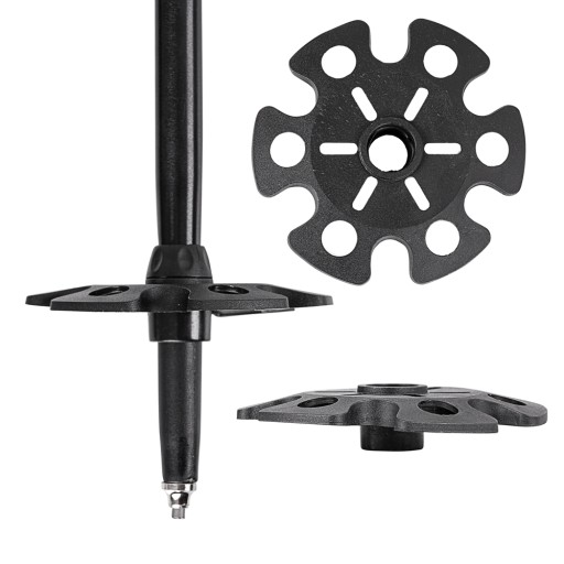 У комплекті також знайдете взуття для скандинавської ходьби, запасні класичні наконечники і навіть 2 види трекінгових кошиків - один для м'якої, а інший для гравійної поверхні.