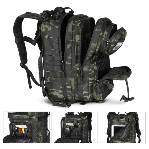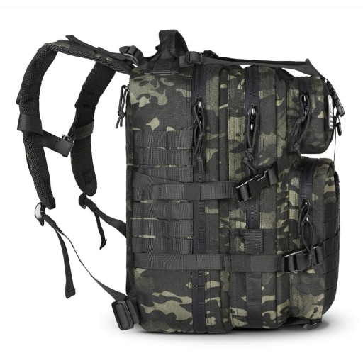 Доброго ранку, предмет аукціону рюкзак 45 літрів кольору MULTICAM BLACK військового типу. Плечові лямки в даній моделі пришиті до рюкзака і посилені регульованими лямками.Рюкзак має багато систем Molle і липучки Molle, на які можна наклеїти прапор США як показано на фото. Прапор не входить до складу рюкзака, що продається. Рюкзак типу "коробка", відділення симетричні, прямокутні.